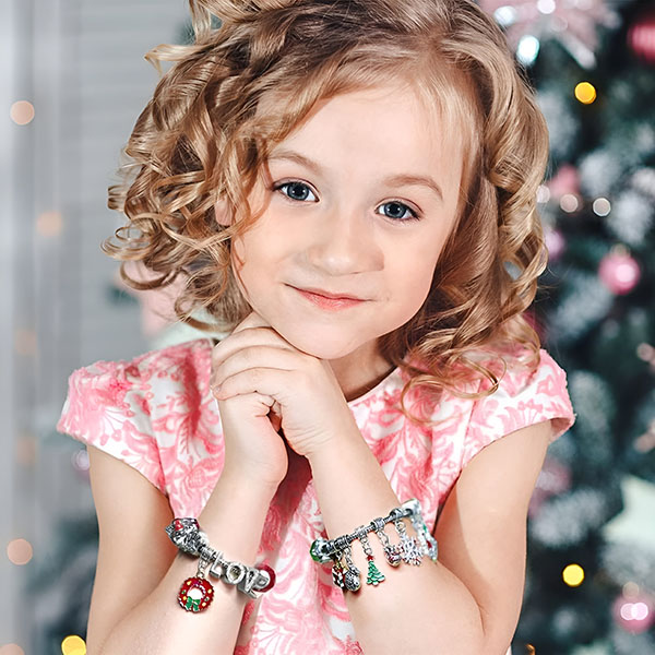 Doskonała opcja dla dziewczynek, które lubią tworzyć własną biżuterię. Ta bransoletka służy jako wciągające zajęcie rękodzielnicze podczas przyjęć, pozwalając dziewczynkom mieszać i dopasowywać koraliki i zawieszki, aby spersonalizować swoją wyjątkową bransoletkę na Boże Narodzenie.