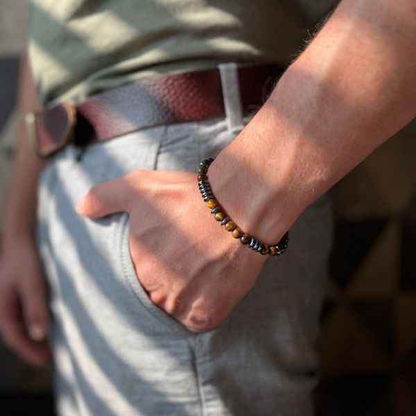Dzięki regulowanej konstrukcji, która pasuje na nadgarstki od 15 do 28 cm, bransoletka jest odpowiednia dla każdego. Oferuje wygodne i indywidualne dopasowanie, które idealnie nadaje się do noszenia na co dzień. Bransoletka wykonana jest z koralików z lawy wuklanicznej i jest hiperalergiczna. Nawet przy regularnym noszeniu nie ma obaw, że wyblaknie, podrażni skórę lub zabrudzi nadgarstek. Ta lekka i trwała bransoletka oferuje elegancki wygląd, który opiera się upływowi czasu.