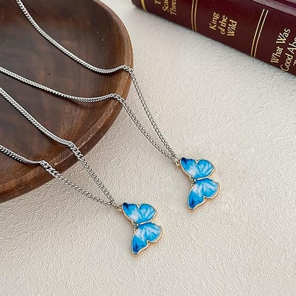 🦋 Ponadczasowy wzór motyla – delikatny niebieski wisiorek motyl symbolizuje transformację, wolność i elegancję.