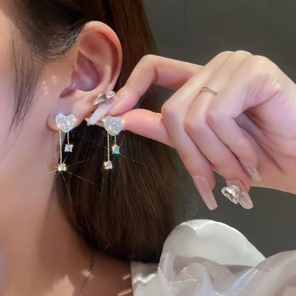 💫 Asymetryczna elegancja: Wykorzystaj urok asymetrii dzięki tym kolczykom z frędzlami w kształcie serca, pięknie ozdobionymi cyrkoniami.
