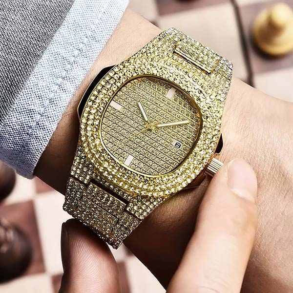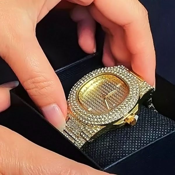 Tysiące połyskujących kryształków sprawia, że ten zegarek przyciąga wzrok. To nie tylko zegarek – to odważne oświadczenie luksusu i elegancji.
