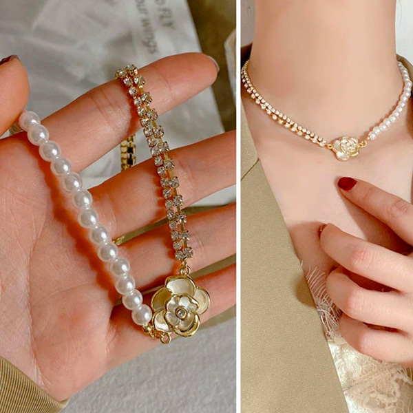 Naszyjnik z Perłową Kamelią w Stylu Vintage | ROSAELIA