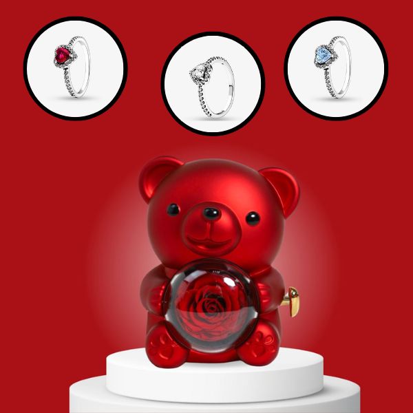 Pierścionek Obietnicy i Pudełko na Biżuterię z Obracającym się Misiem | HEARTISO_ROSBEAR