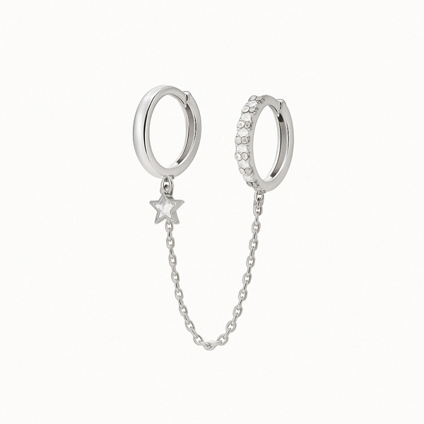 Kolczyk Satina to zdecydowanie coś wyjątkowego. Dwa kolczyki połączone łańcuszkiem będą zawsze wyróżniać się na Twoim uchu i sprawią, że inni zauważą Twoje poczucie estetyki. Kolczyk jest dostępny jako pojedynczy element i nadaje się do łączenia z innymi kolczykami.